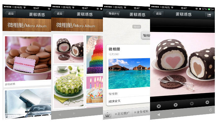 微相冊作為微信平臺的一項主打基本功能,為微信用戶提供圖片的存儲和展示服務(wù),是基于圖片興趣分享的社區(qū)型產(chǎn)品。在微相冊里,您可以方便的創(chuàng)建相冊,輕松地發(fā)布您需要展示的照片,還可以拓展為商家開展活動的一種展現(xiàn)方式。